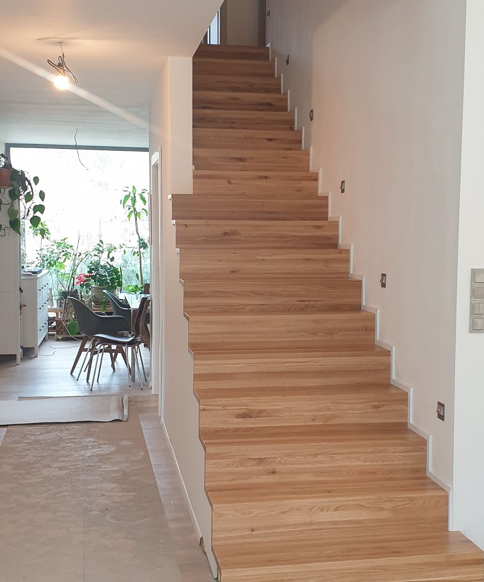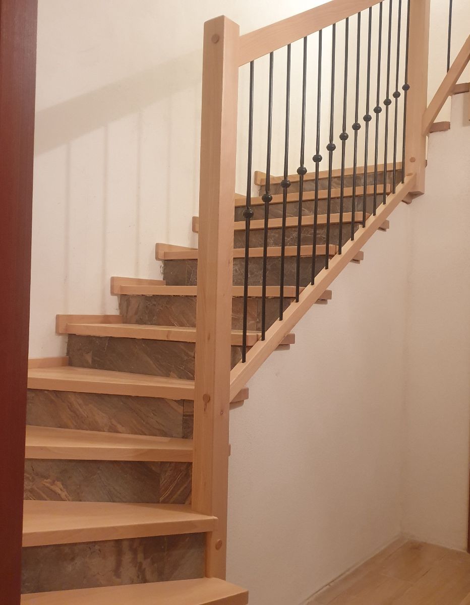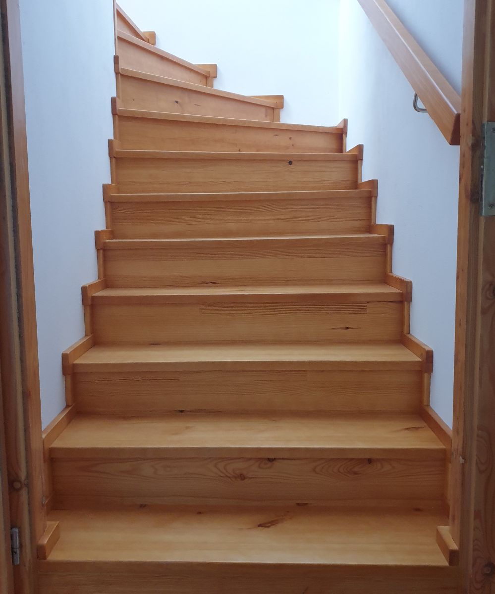 Naše olepovaná schodiště spojují krásu dřevěných nášlapů a podstupňů s pevnou betonovou nebo kovovou konstrukcí. Součástí dodávky jsou i zábradlí a galerie, vše lakováno dvousložkovými polyuretanovými laky, včetně speciálních laků na namáhané plochy, případně lze natírat tvrýdmi voskovými oleji OSMO.
