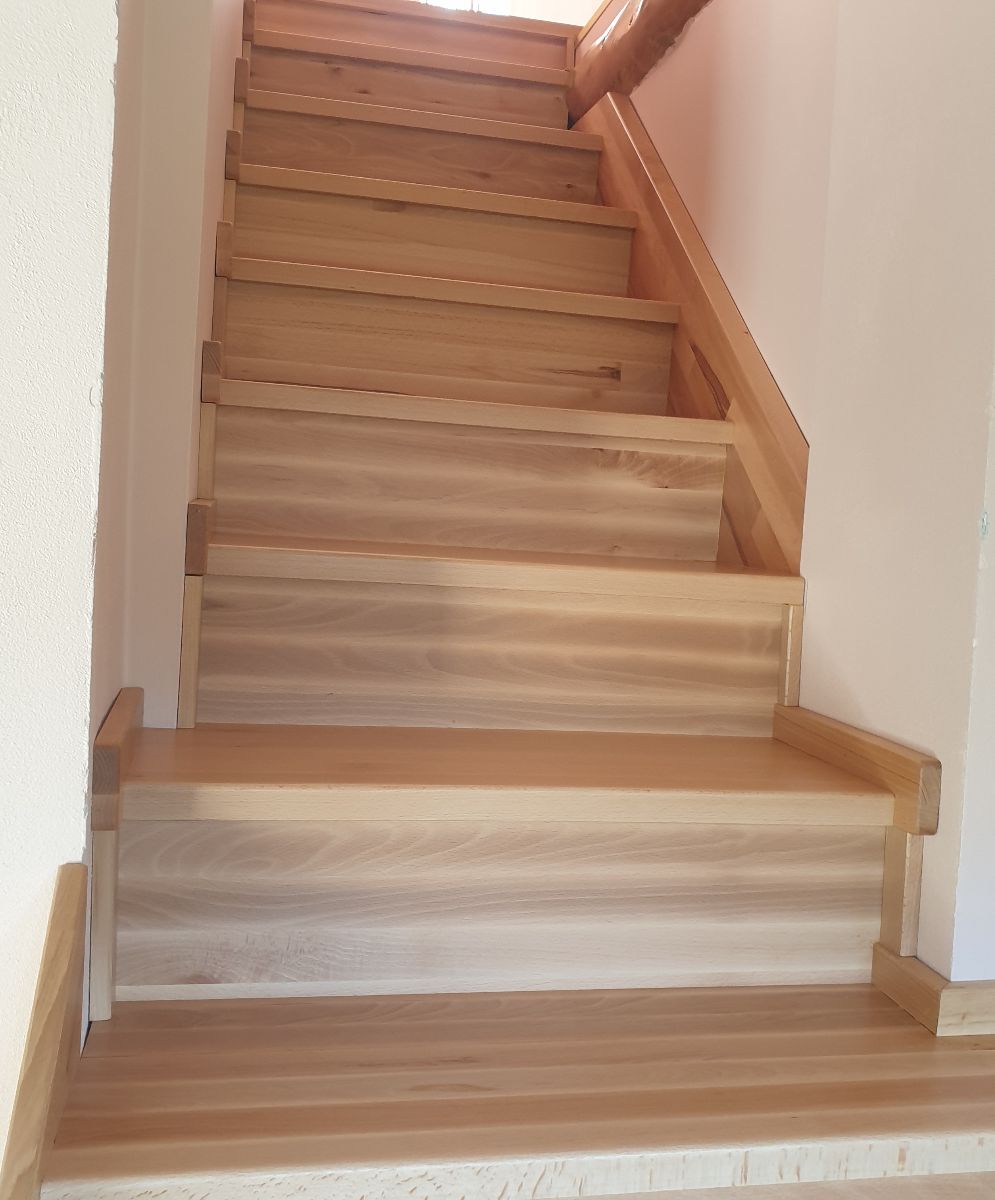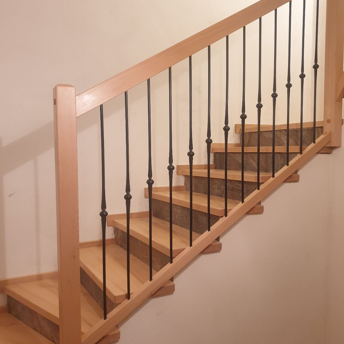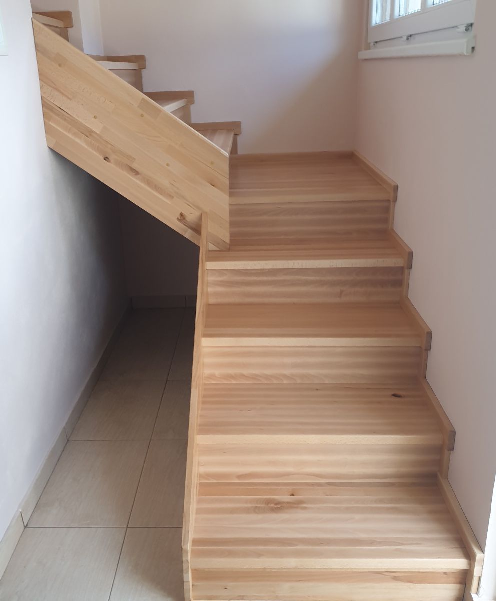 Naše olepovaná schodiště spojují krásu dřevěných nášlapů a podstupňů s pevnou betonovou nebo kovovou konstrukcí. Součástí dodávky jsou i zábradlí a galerie, vše lakováno dvousložkovými polyuretanovými laky, včetně speciálních laků na namáhané plochy, případně lze natírat tvrýdmi voskovými oleji OSMO.